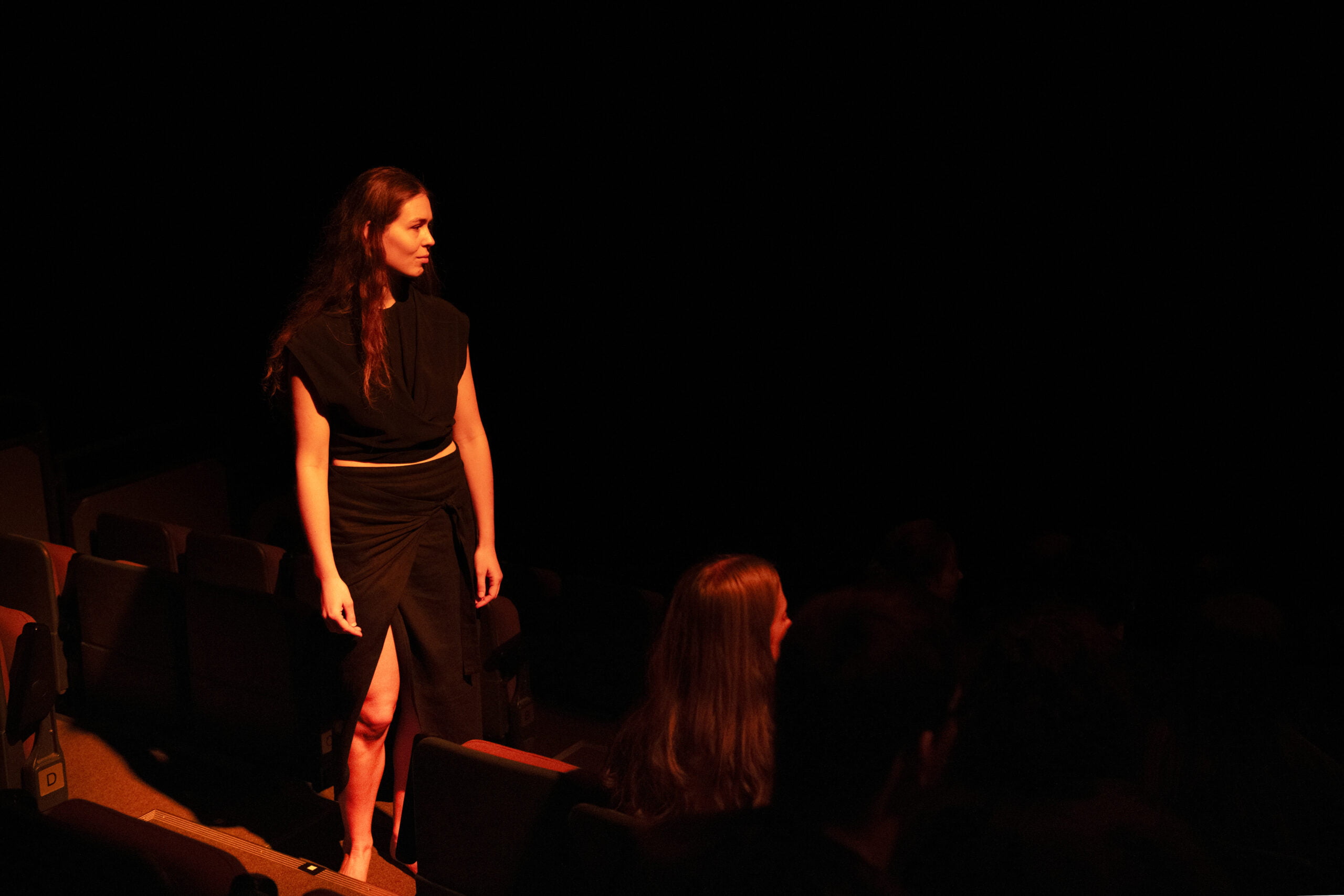 For “Yellow Horizon,” choreographer and philosopher Annemijn Rijk, in collaboration with scenographer Theun Mosk, explored the principles of spatial, sensory, and physical disorientation. Yellow Horizon is not a traditional performance but an experience, a ritual, that makes your senses tremble. Everything comes straight to you. By playing with light and darkness, breath and perspective, the theater hall is being transformed. This sharpens your senses, and you perceive the world differently than you’re accustomed to. Dancer Noemi Calzavara, mime player Niels van Heijningen, and actress Sofie Porro are your guides in this free fall.